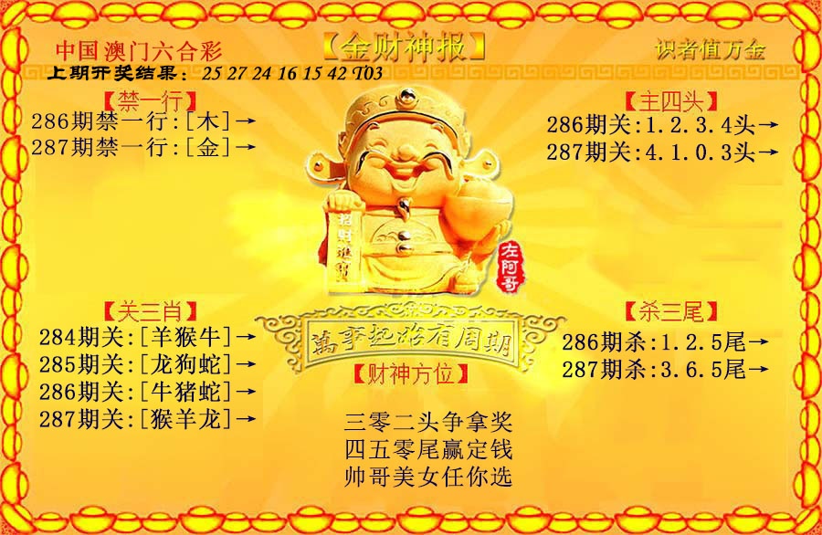 287期 | 蛇狗鸡马猪鼠 | 开:?00中 |